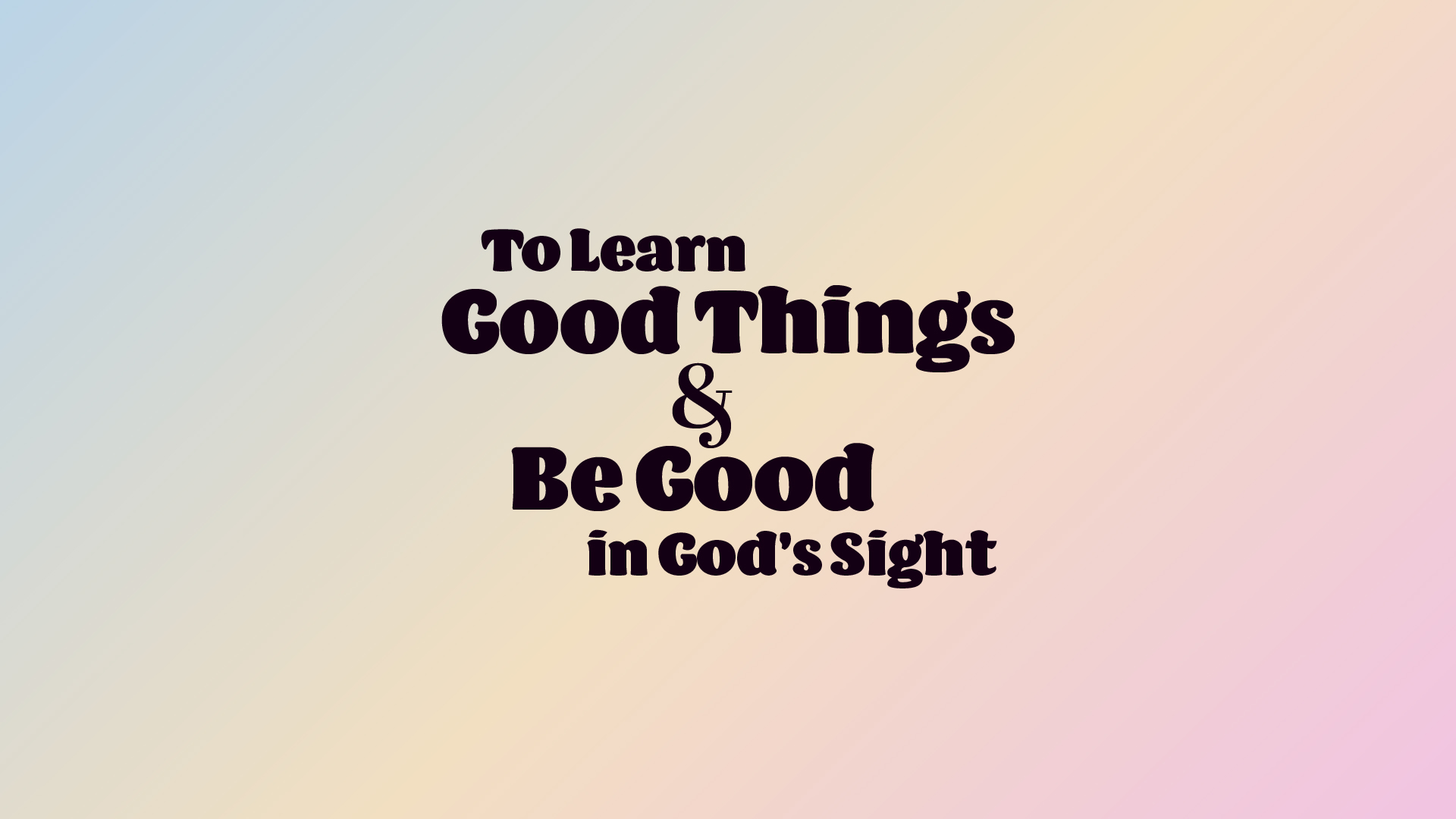 To Learn Good Things and Be Good in God's Sight (Part 1)