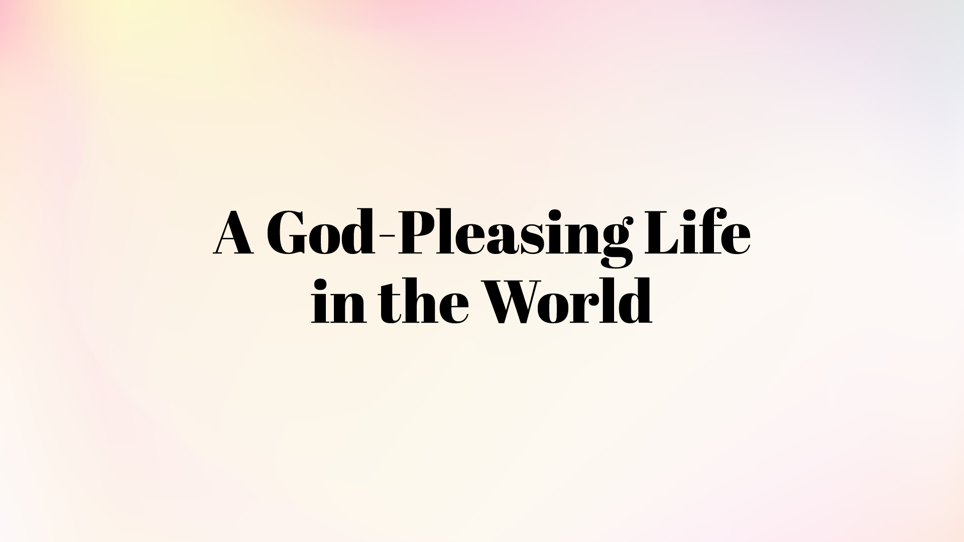 A God-Pleasing Life in the World (Part 1)